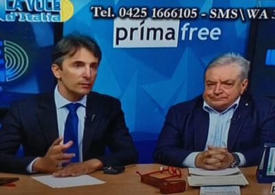 Ospite ai talk show ‘Focus’ dell’emittente televisiva triveneta ReteVeneta-MediaNordest a cura di Luigi Bacialli, ‘La Voce d’Italia’ dell’emittente televisiva nazionale Prima Free a cura di Enzo Spatalino, Il Tarlo’ dell’emittente Cafè Tv 24 a cura di Alberto Salmaso, ‘Prima Serata’ dell’emittente Tva Vicenza del gruppo VideoMedia a cura di Gian Marco Mancassola, ‘Lunedì in Campo’ dell’emittente televisiva nazionale Prima Free e Domenica Sport di Delta Radio a cura di Salvatore Binatti, ai programmi radiofonici ‘Fuori la Voce’ di Radio Venezia Sound, ‘StoryTime’ di Radio Canale Italia, alle rubrica “Lettere al Direttore” del Giornale di Vicenza e ilPunto.news commentando notizie e temi di attualità, politica, giuridici, sport.